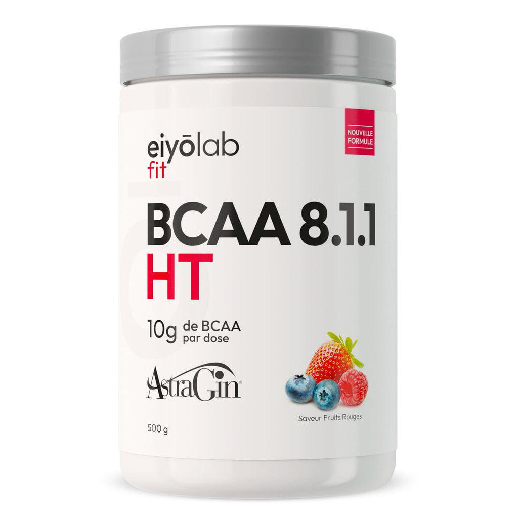 BCAA 8.1.1 HT délivre 10 g de BCAA par dose, dont 8 g de leucine, pour stimuler efficacement la construction musculaire. Sa composition intègre également de la citrulline pour améliorer l’oxygénation des muscles, réduire la fatigue et protéger les fibres musculaires pendant l’effort. Enrichie en AstraGin®, cette formule garantit une assimilation optimale des nutriments essentiels.