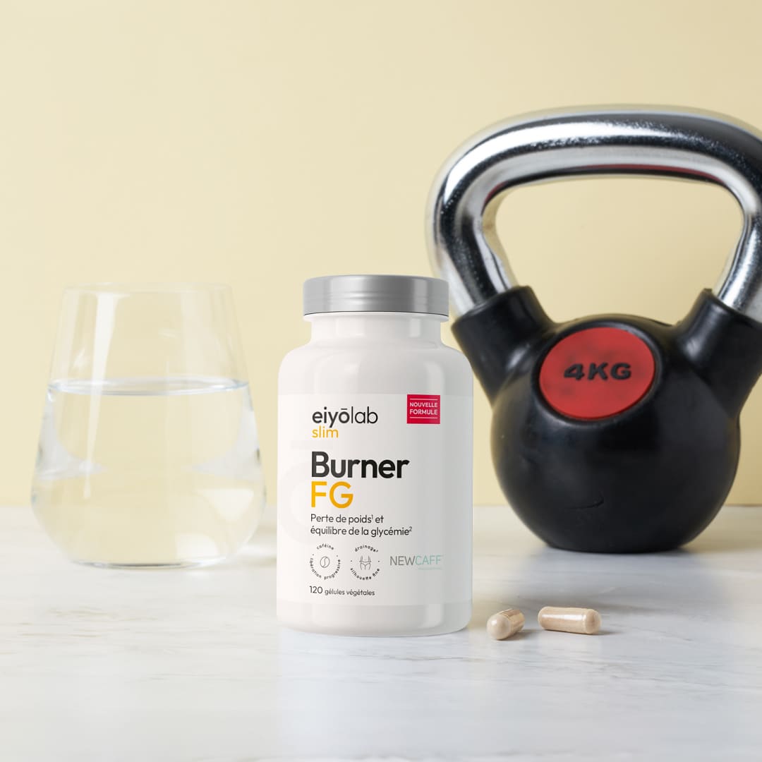 La caféine est un ingrédient que l’on trouve quasi systématiquement dans tous les brûleurs de graisse. Naturellement présente dans le café ou le guarana, elle est reconnue pour stimuler la thermogenèse, soit la production de chaleur par le corps. Ce processus s’accompagne d’une augmentation de la dépense calorique. Mais le principal défaut de la caféine, c’est sa rapidité d’absorption et les désagréments ressentis au bout d’environ 3 heures. Pour cette raison, la marque d’experts Eiyolab a choisi d’améliorer la formule de Burner FG autour de la forme de caféine la plus adaptée aux programmes pour la perte de poids.