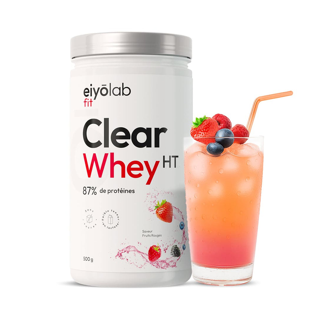 Tu es à la recherche d’un  isolat de whey léger pour tes entraînements, qui n’a ni le goût, ni la texture du lait ? Clear Whey HT d'Eiyolab avec son bon goût et sa texture d’eau fruitée est faite pour toi !