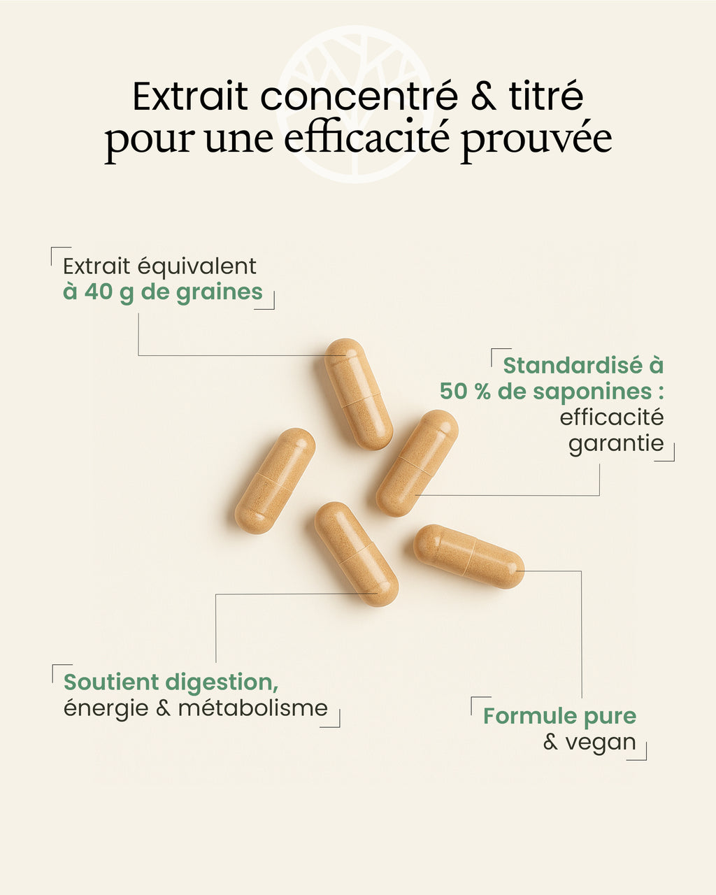 - Équilibre métabolique : Le fenugrec participe au maintien d’une glycémie normale et soutient le métabolisme lipidique.