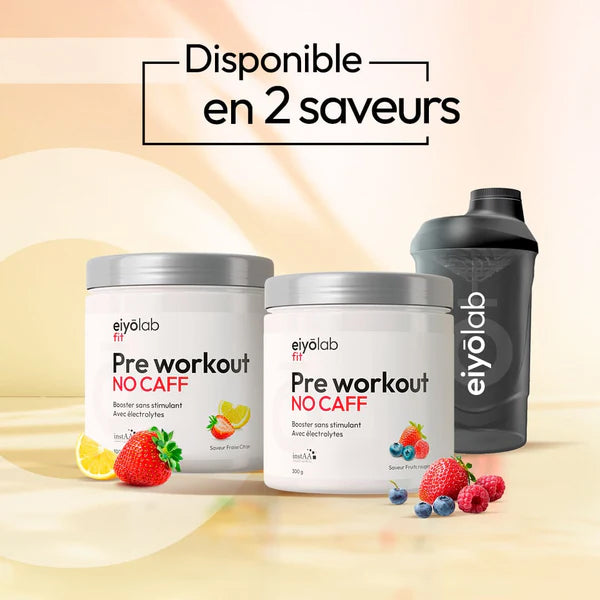 Eiyolab a pris le parti de formuler un Pre-workout sans créatine ni caféine, le rendant efficace et utilisable par tous les types de sportifs, et ce, quel que soit le moment de la journée où ils s’entraînent. Pre-Workout No Caff assure des séances plus productives et plus efficaces grâce à ses ingrédients brevetés minutieusement choisis.