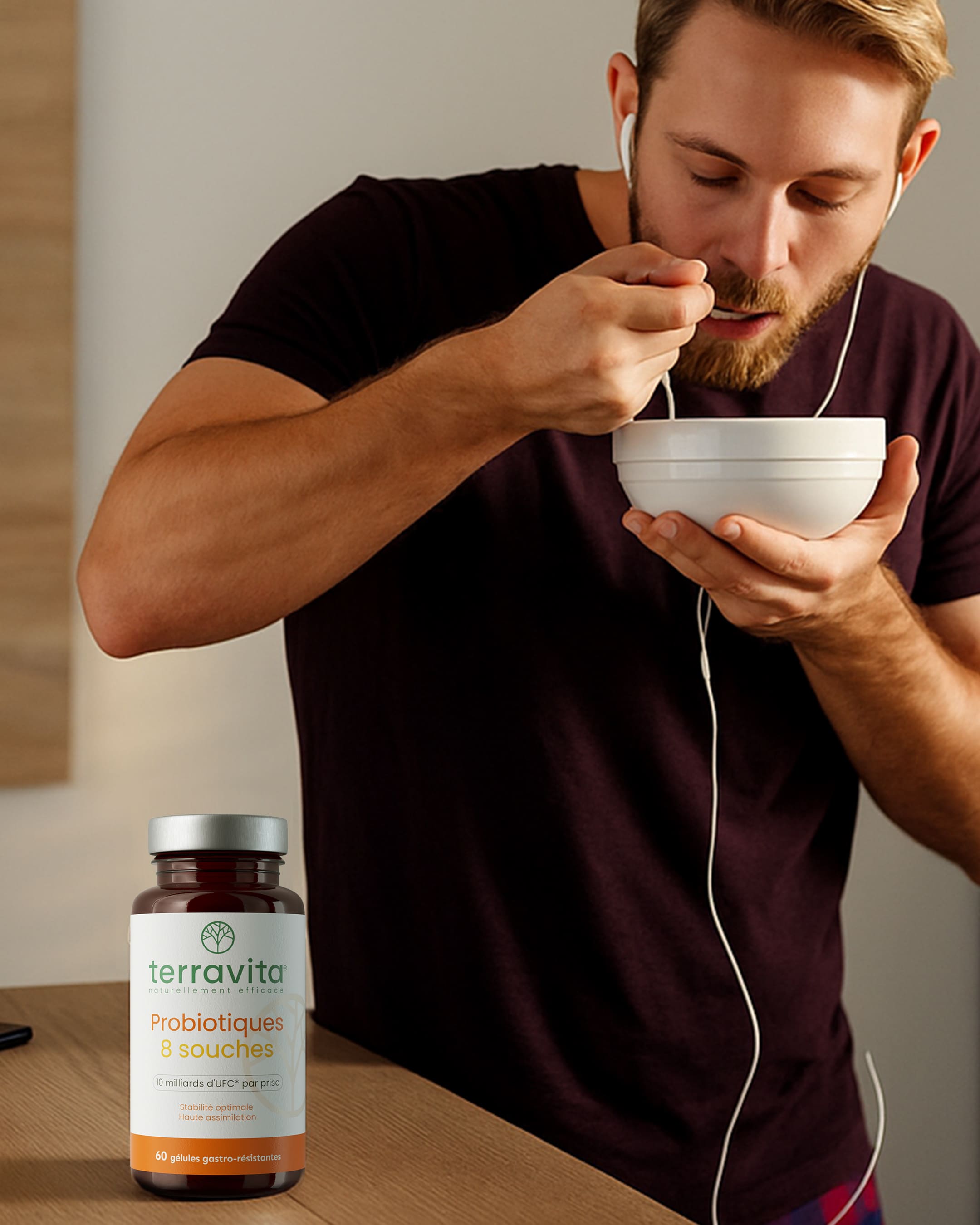 Les Probiotiques 8 Souches Terravita apportent 10 milliards d’UFC par gélule, avec des souches scientifiquement documentées reconnues pour leur capacité à rééquilibrer la flore intestinale, renforcer la barrière digestive et améliorer l’assimilation des nutriments.