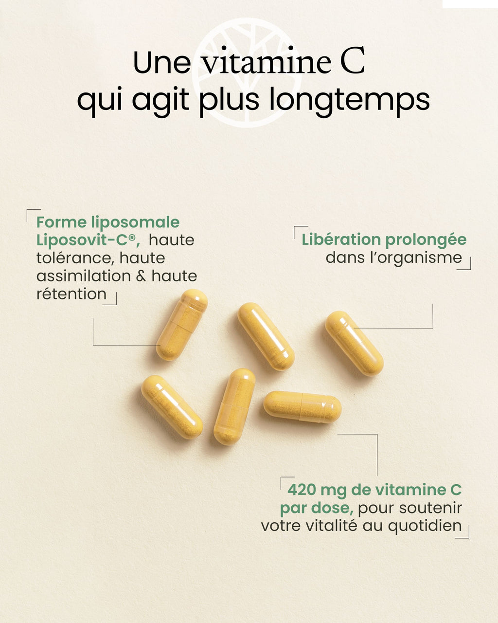 Sa forme liposomale brevetée permet une absorption jusqu’à 20 fois supérieure à une vitamine C classique, tout en garantissant une tolérance digestive optimale.