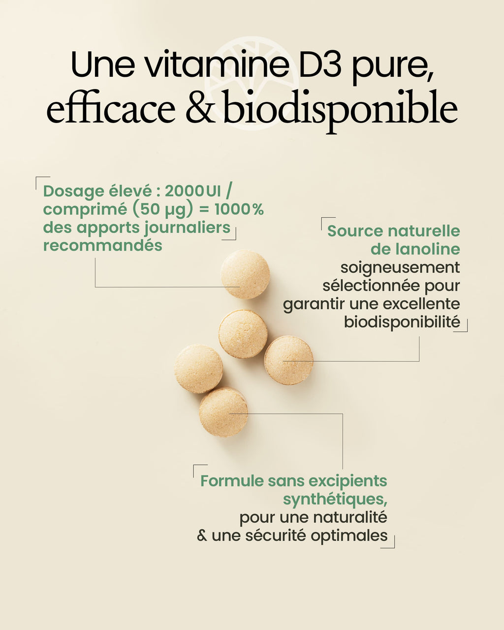 Chaque gélule fournit un dosage précis de 50 µg (2000 UI), conforme aux recommandations d’experts pour les sportifs soumis à des déficits fréquents.
