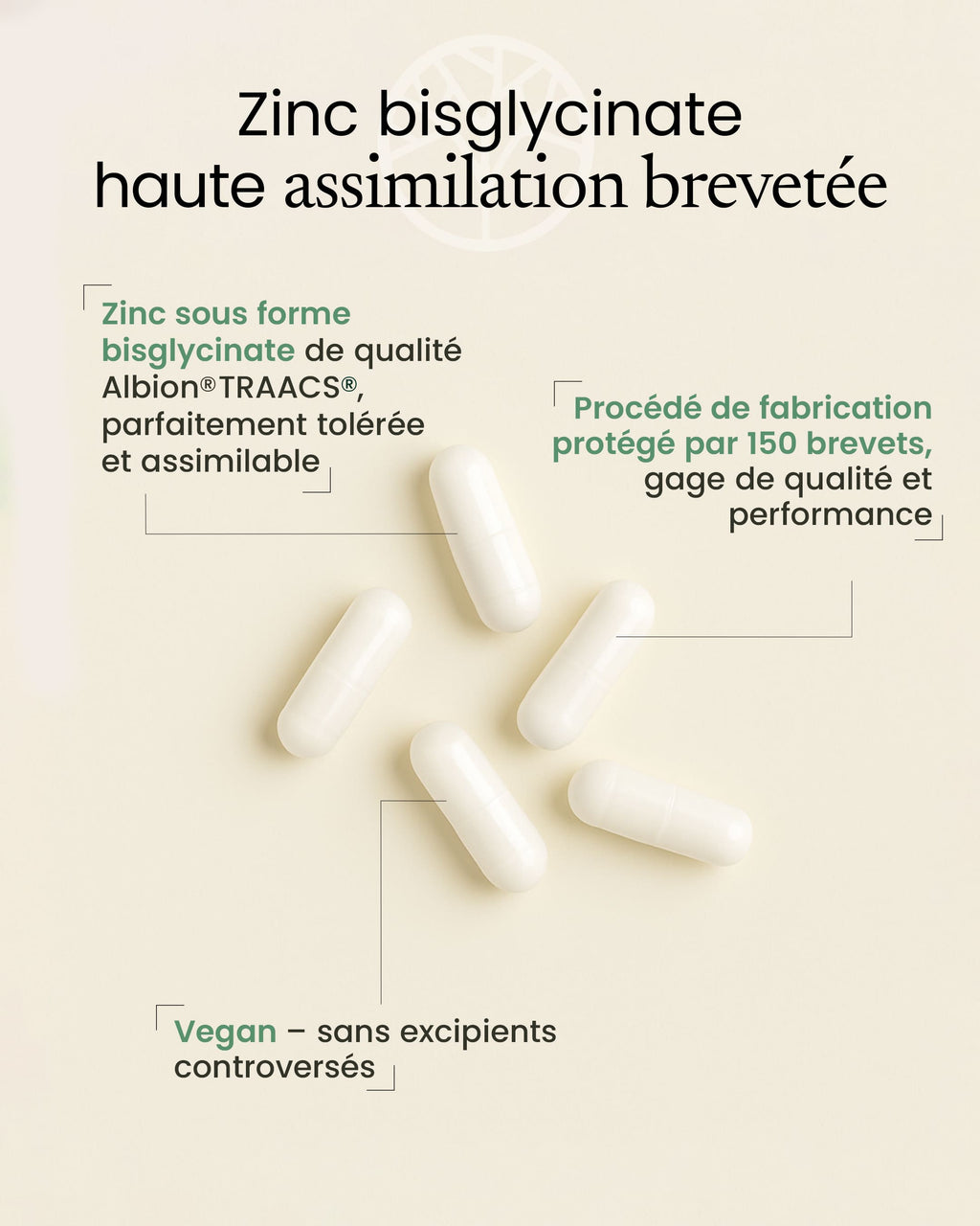 Cette structure spécifique permet au zinc d’être mieux absorbé et mieux utilisé par l’organisme, tout en évitant les inconforts gastriques souvent liés à d’autres formes de zinc.