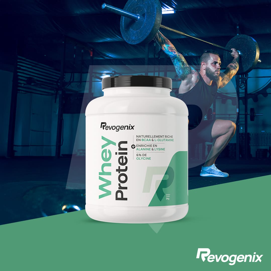 Whey Protein de Revogenix est la protéine parfaite pour les régimes sportifs, hyperprotéinés et même hypocaloriques. Composée à 100% de concentré de whey, cette protéine est naturellement très riche en acides aminés essentiels (EAA), ramifiés (BCAA) et en glutamine.